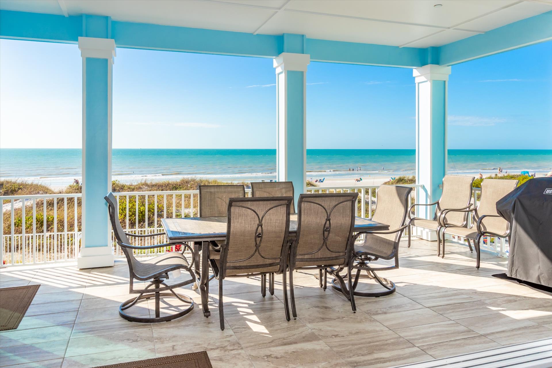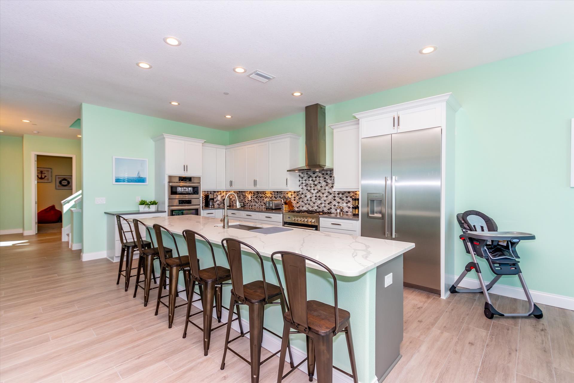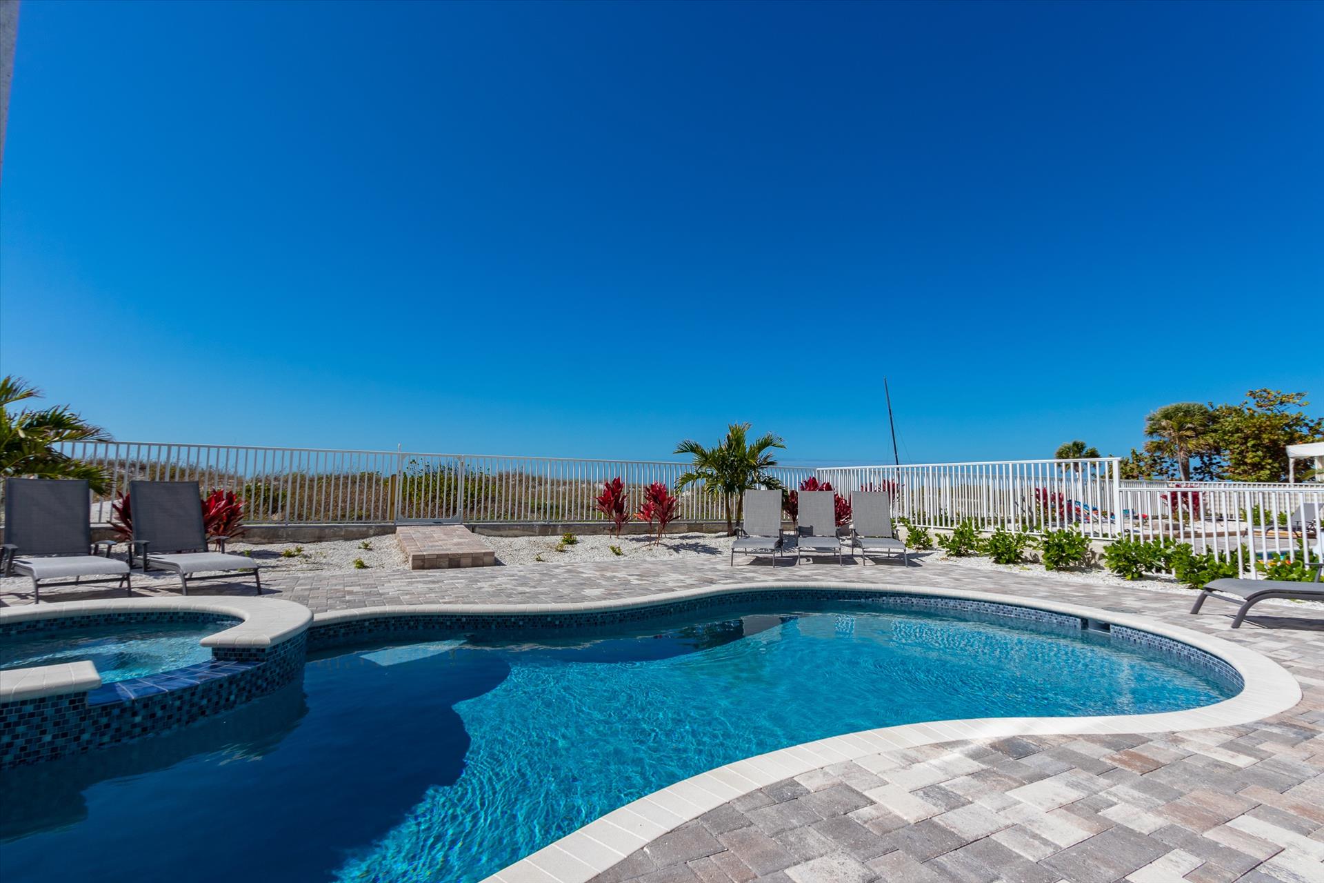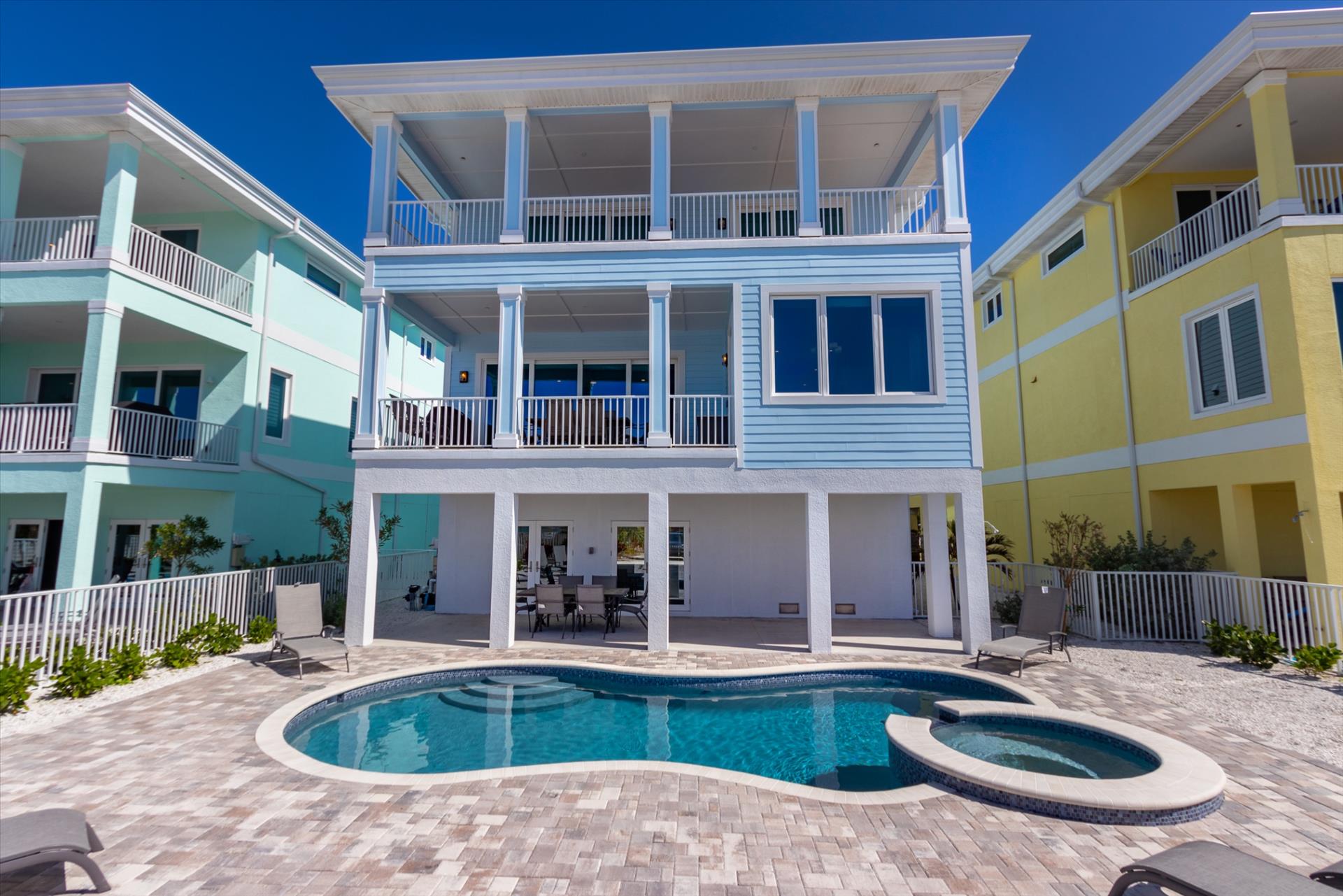 The rear of the property has a pool and hot tub, with sunbeds and seating for you and your party to relax in. There is also an outdoor shower for you to rinse off after a dip in the warm Gulf of Mexico which is just steps away. There are plenty of amenities and toys for your use. We have beach chairs and umbrellas, Paddle boards and Kayaks available for your use*. There is also a full crib, pack-n-play, high chair and baby gates for your convenience. There is no doubt, that you, your family and friends will enjoy your stay in our home.
