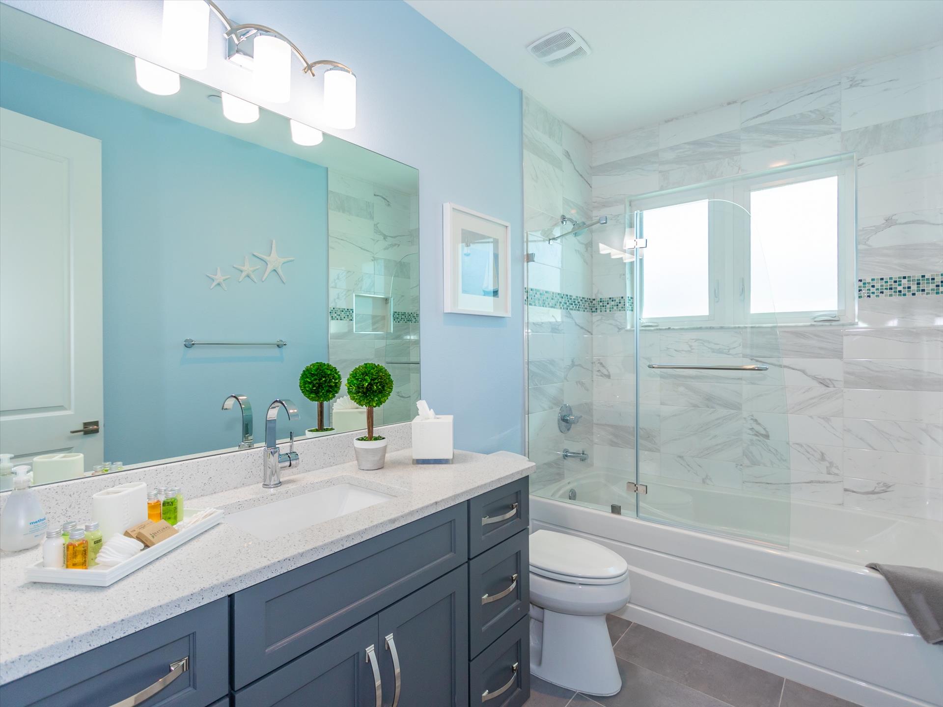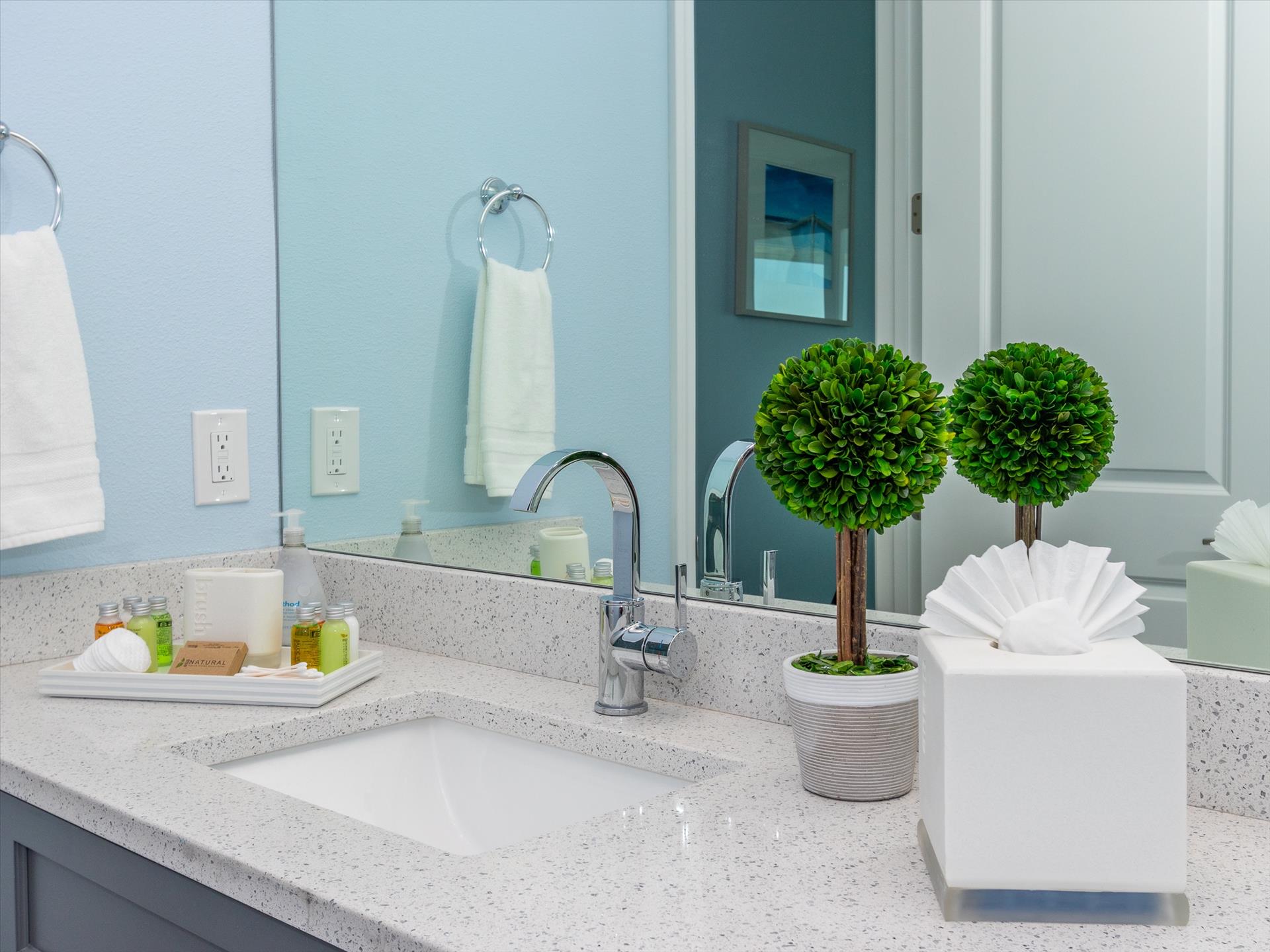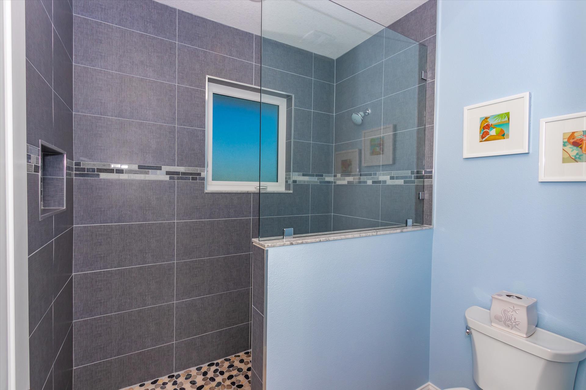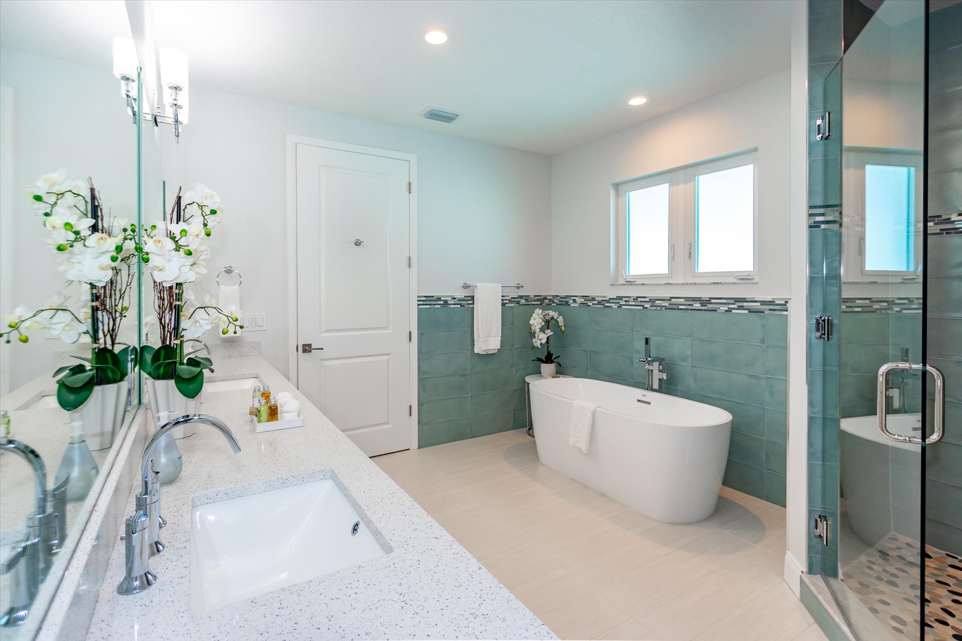 The third floor consists of the remaining 4 bedrooms. The master bedroom has a king bed and large walk in closet. The master bathroom features a soaking tub and separate walk in shower as well as a double sink/vanity unit. Bedroom 2 has a king bed and an en suite tub/shower combination. This bedroom and the master share a large balcony with incredible views of the beach and the Gulf of Mexico. The other two bedrooms on this floor share a Jack'n'Jill bathroom. One bedroom has a queen bed, the other a king bed. There is also a laundry room on the 3rd floor. All bedrooms have a flat screen smart TV.