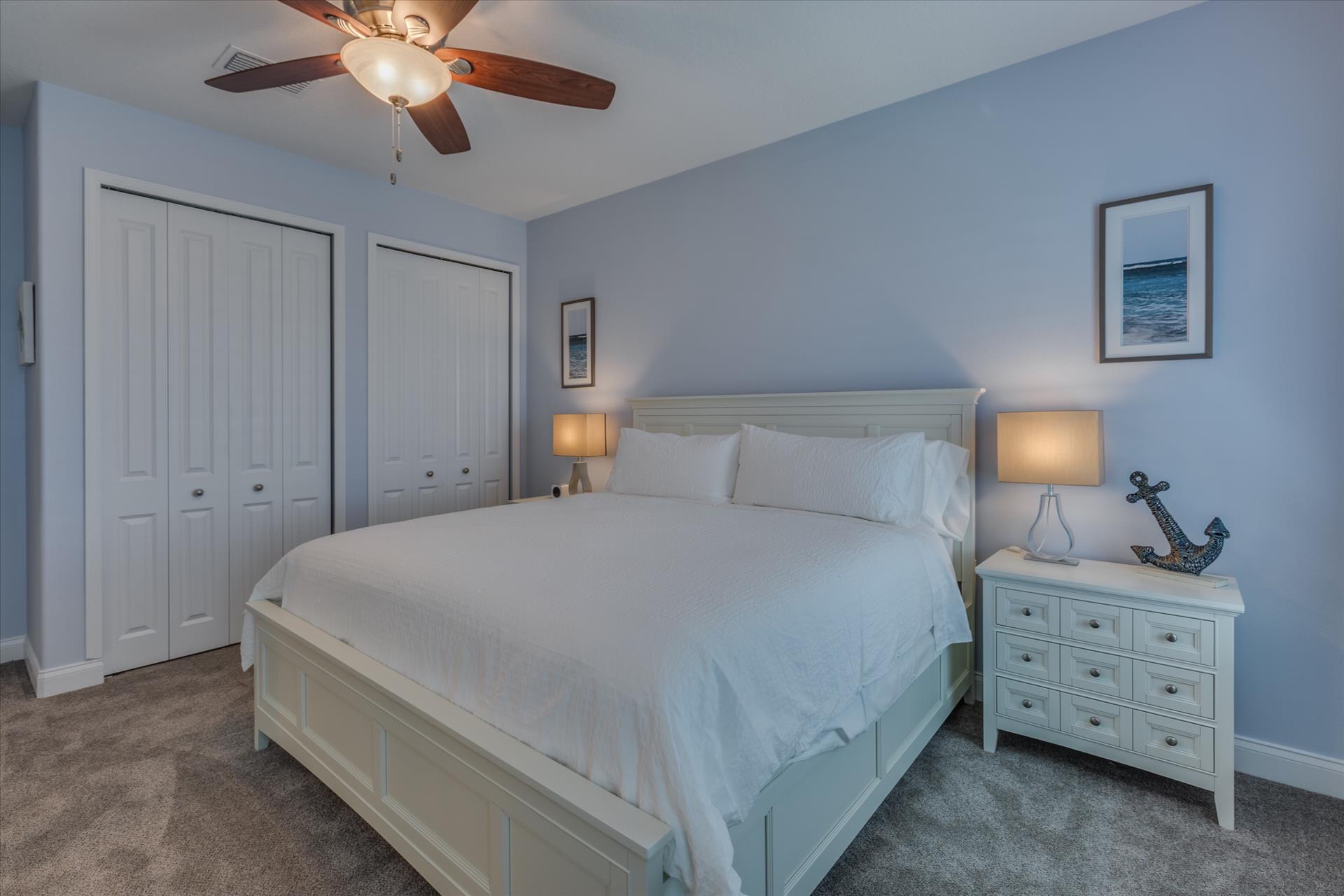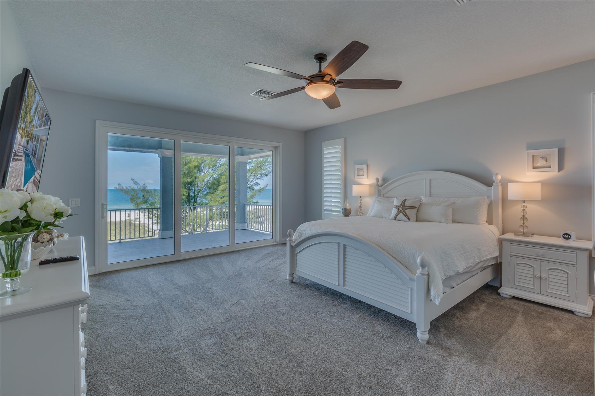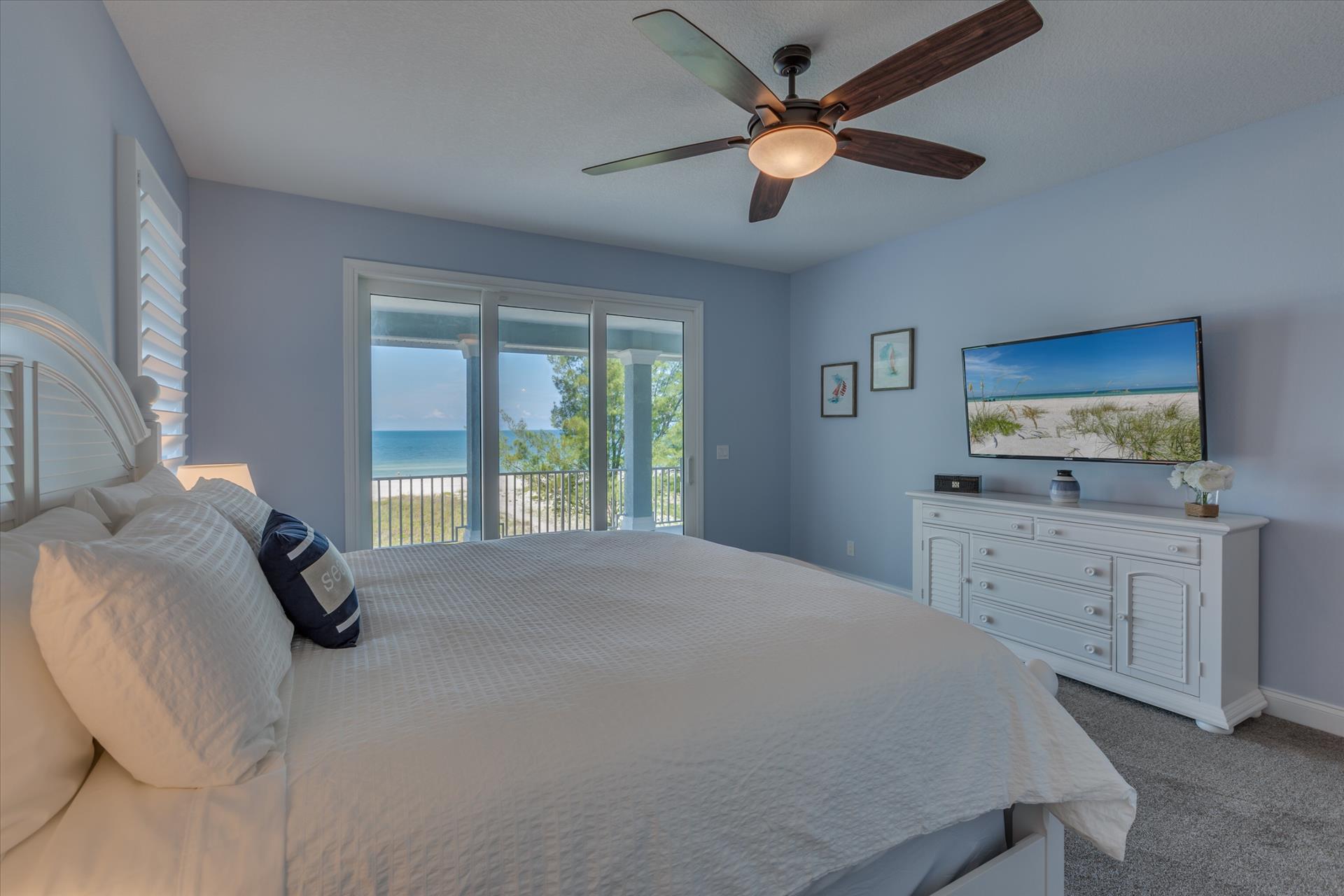 Bedroom 2 has a king bed and an ensuite tub/shower combination. This bedroom and the master share a large balcony with incredible views of the beach and the Gulf of Mexico.