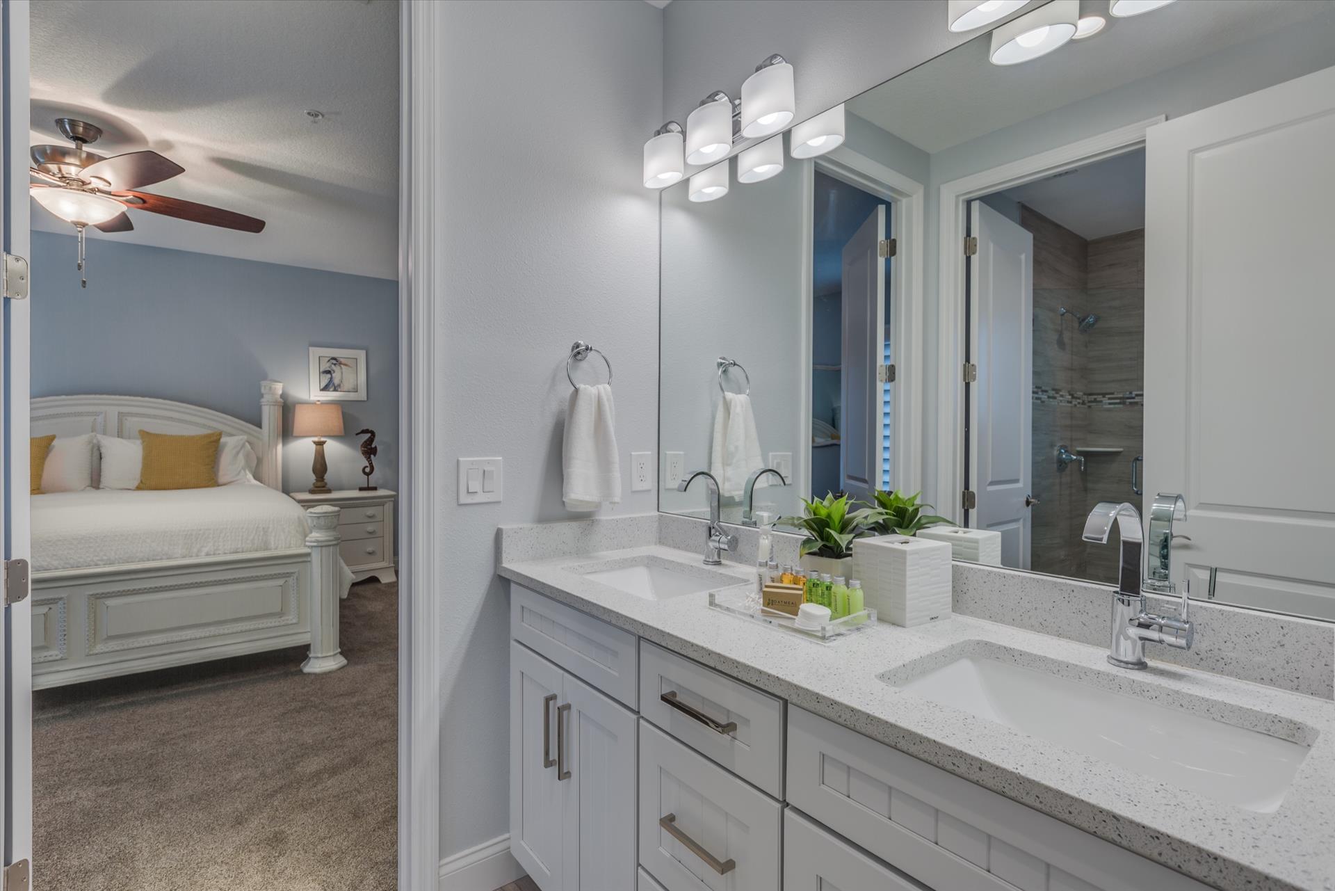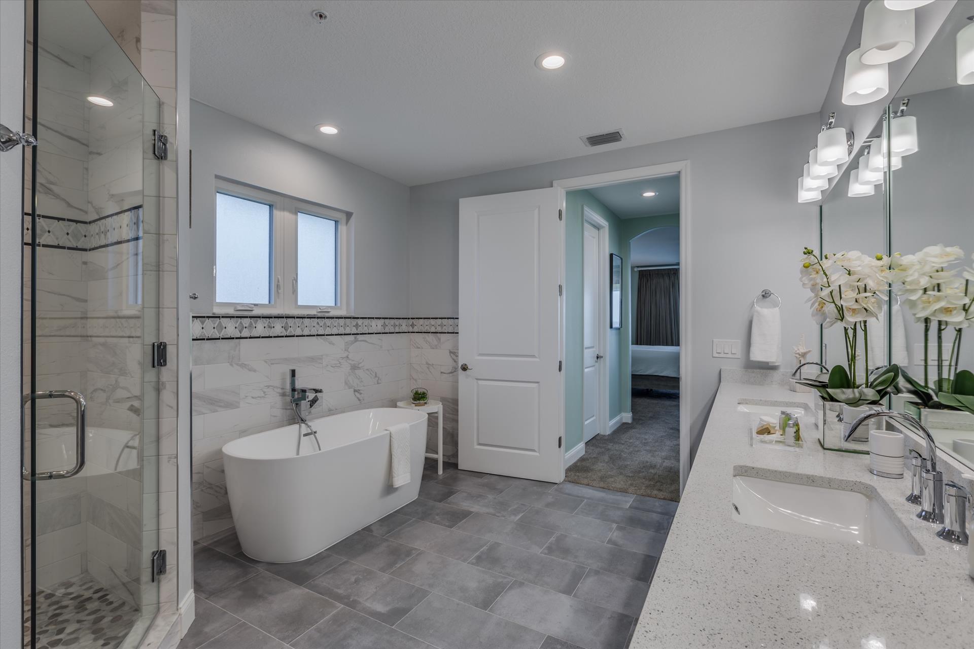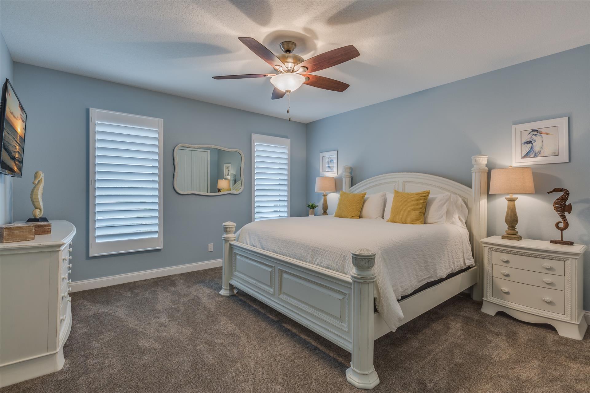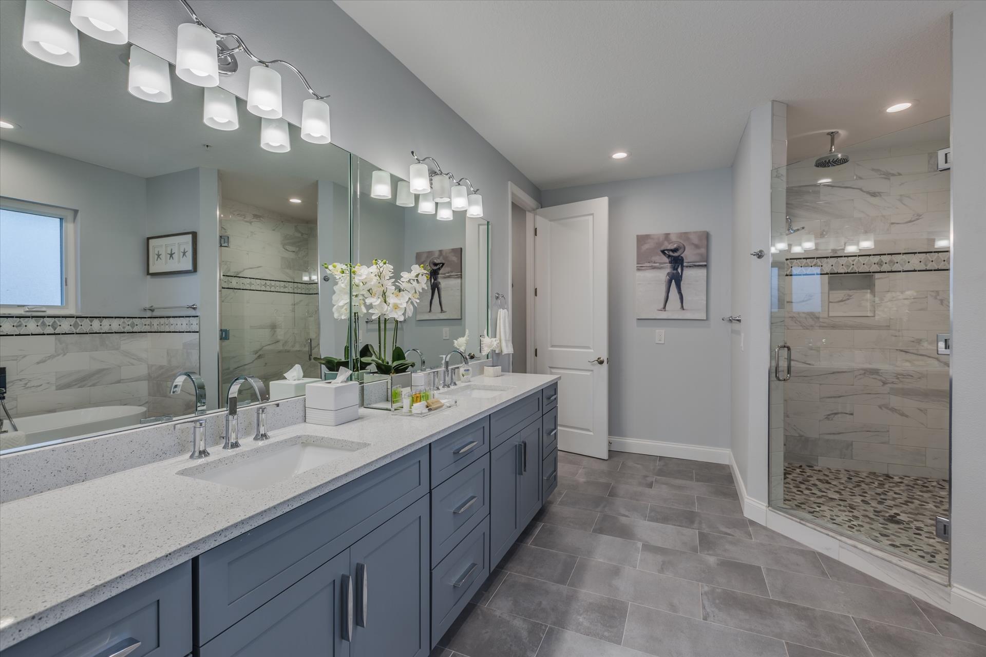 The third floor consists of the remaining 4 bedrooms. The master bedroom has a king bed and large walk in closet. The master bathroom features a soaking tub and separate walk in shower as well as a double sink/vanity unit.