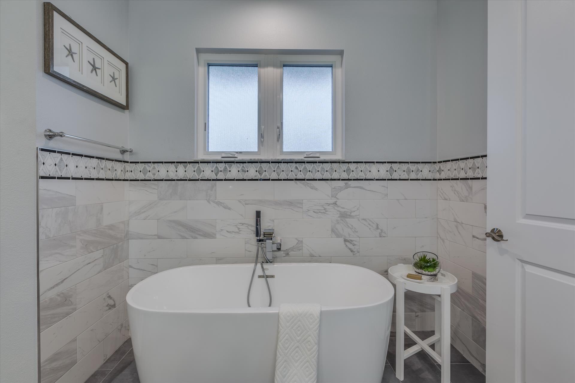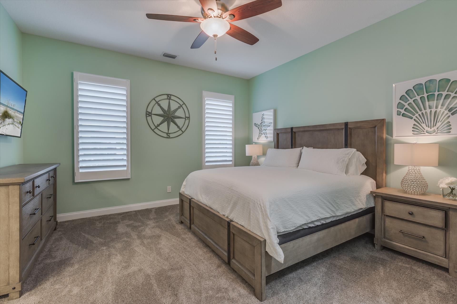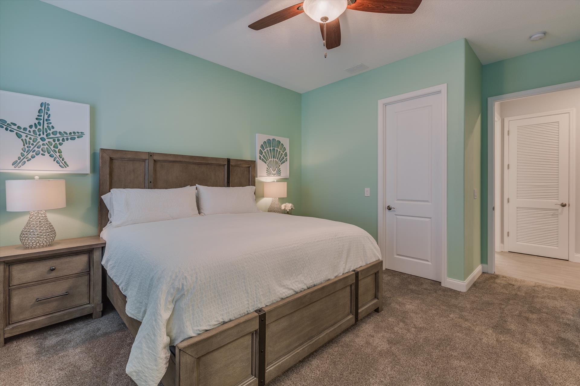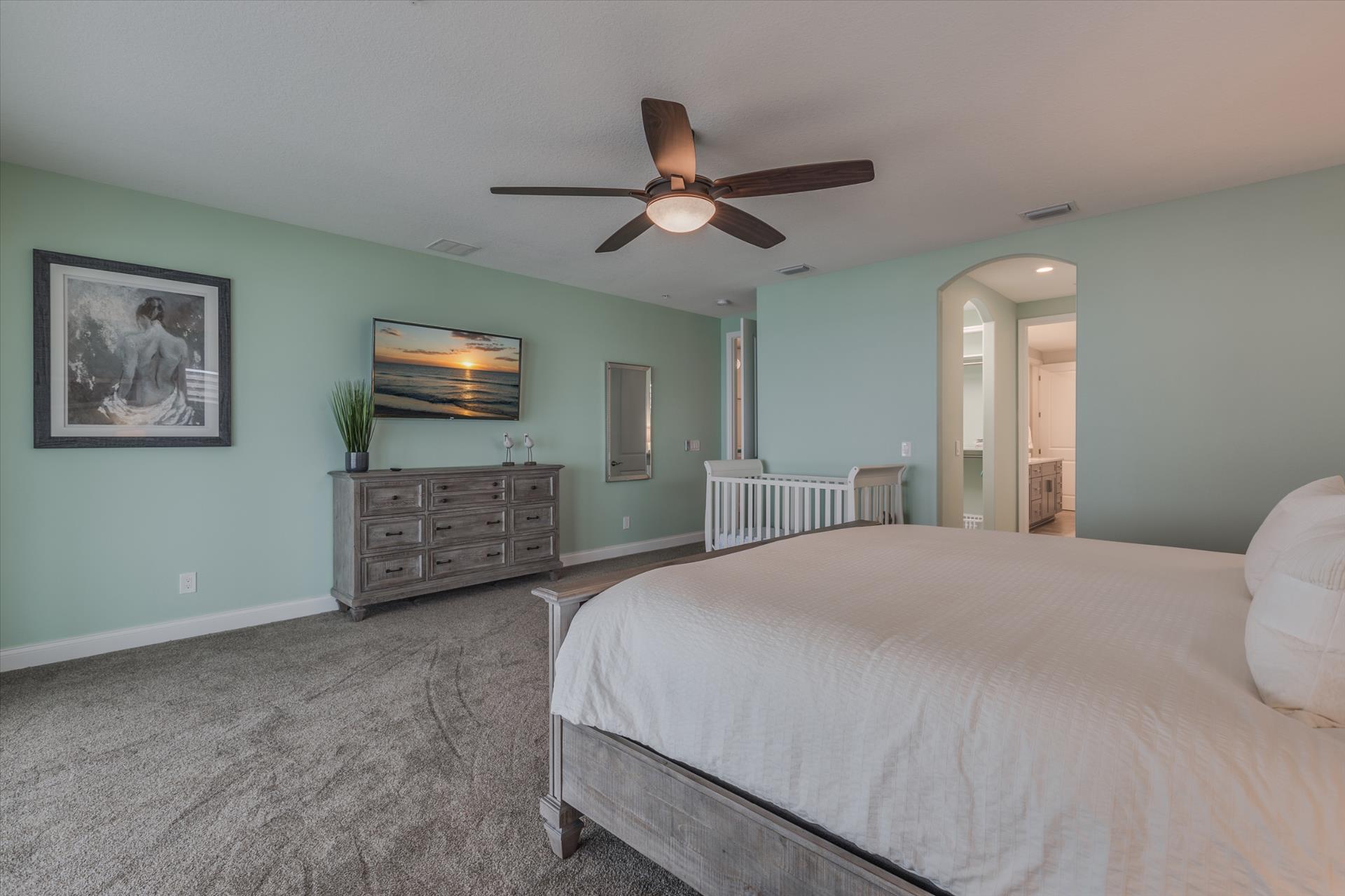 The third floor consists of the remaining 4 bedrooms. The master bedroom has a king bed and large walk in closet. The master bathroom features a soaking tub and separate walk in shower as well as a double sink/vanity unit.